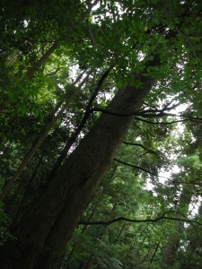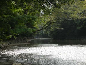 左より、月読宮の参道、伊勢神宮(内宮)の脇を流れる五十鈴川、伊勢神宮(内宮)の御神木(?